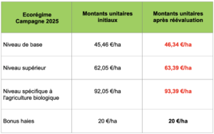 En bref — Un arrêté du 25 novembre 2025 corrige l'arrêté du 23 septembre 2025 fixant les montants unitaires du programme volontaire pour le climat et le bien-être animal dit « écorégime » pour la campagne 2025.
