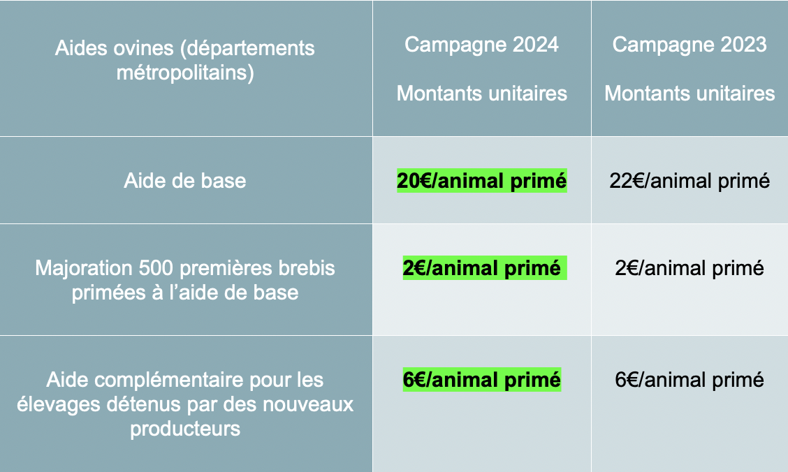 En bref — Un arrêté du 2 octobre 2024 détermine les montants des aides ovines et de l'aide caprine dans les départements métropolitains hors Corse pour la campagne 2024.