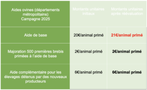 En bref — Un arrêté du 25 novembre 2025 révise l'arrêté du 30 septembre 2025 définissant les montants des aides ovines dans les départements métropolitains hors Corse pour la campagne 2025.